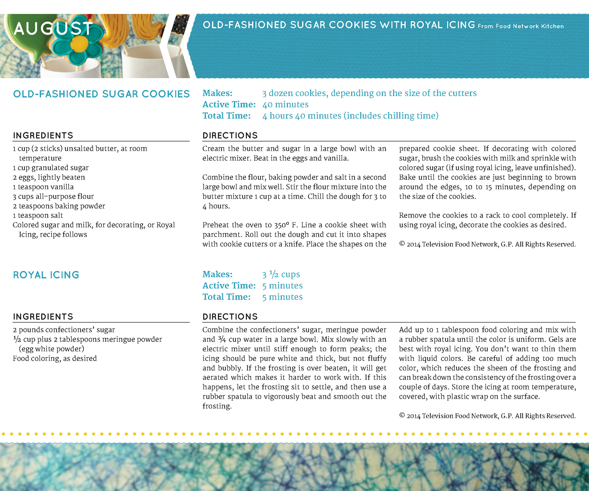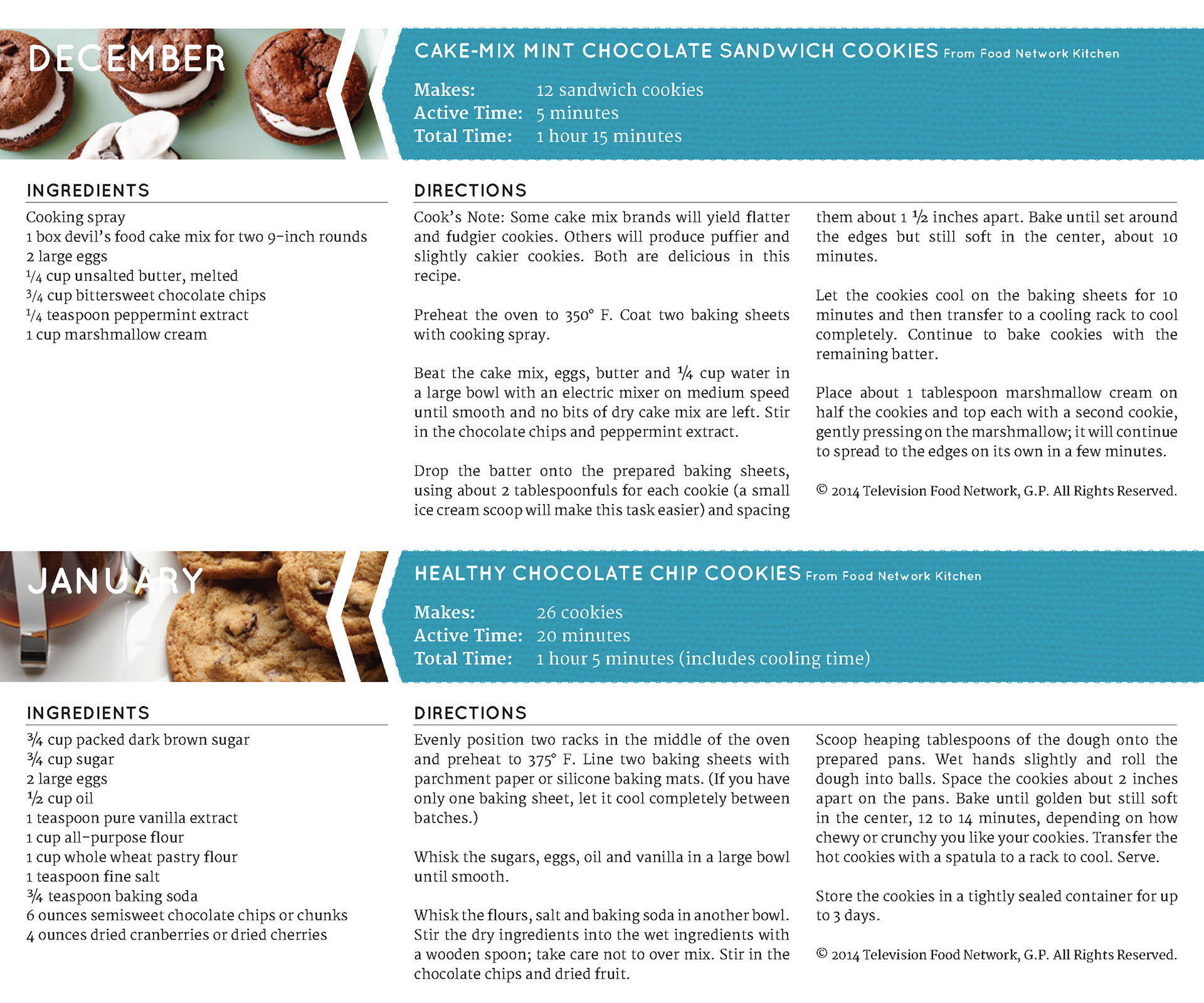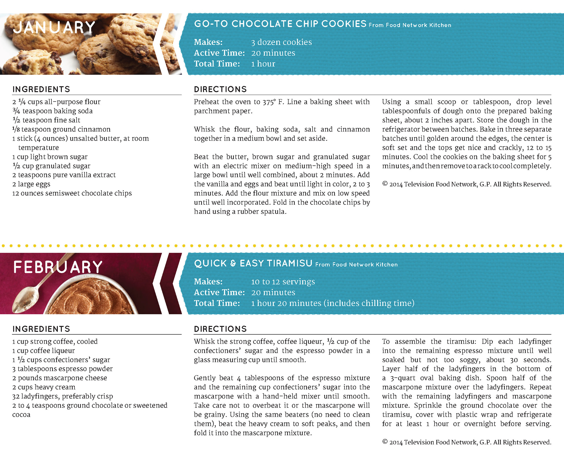 Designed Food Network's calendar with recipes.